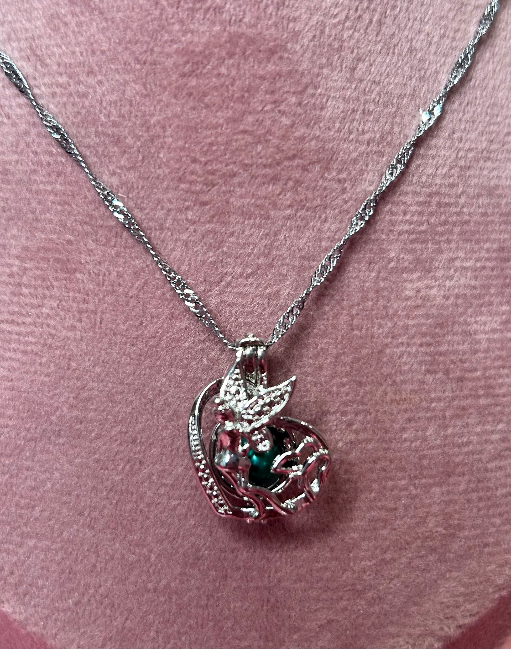 This lovely fairy cage pendant comes with a round oyster opening and a chain