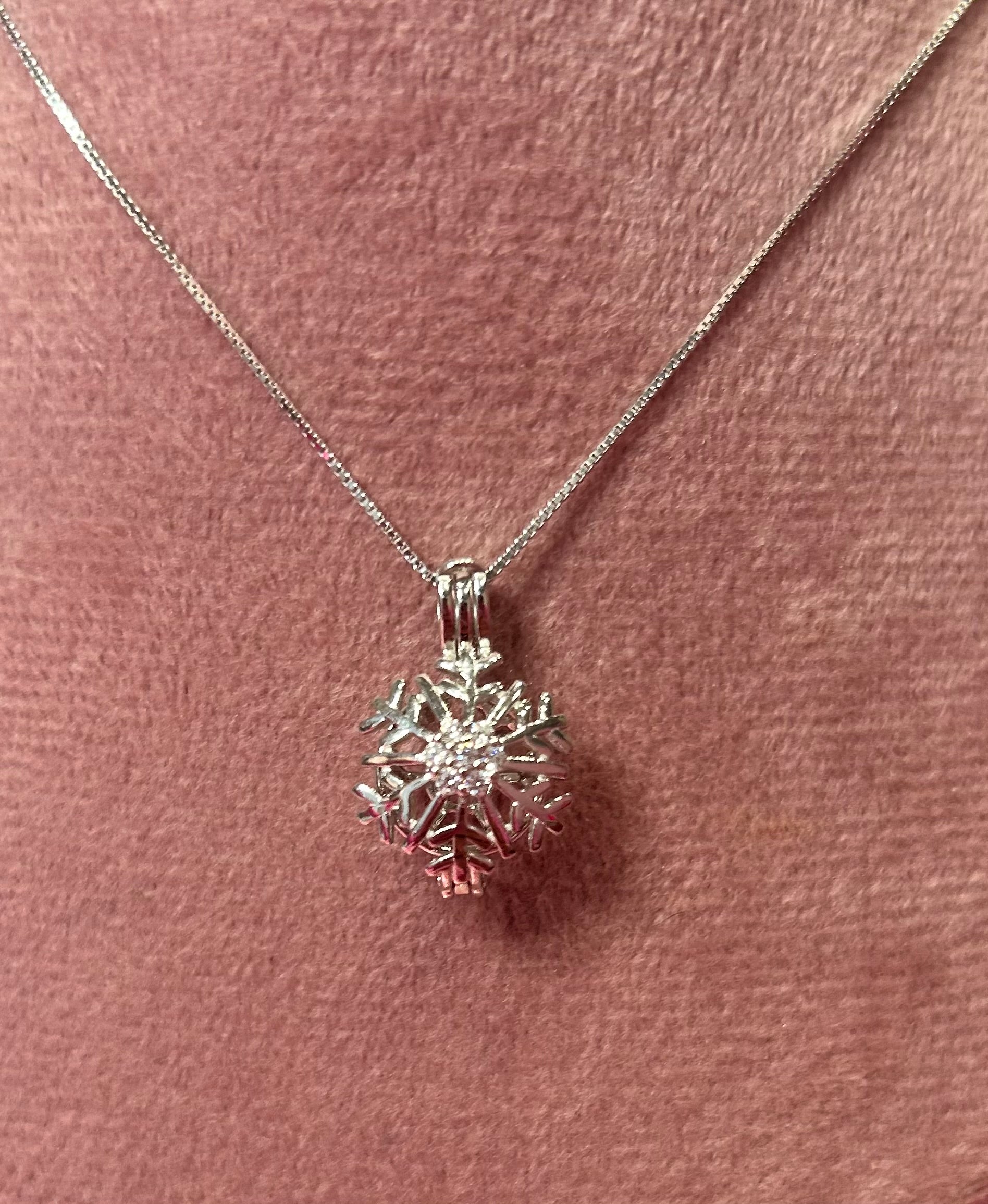 This gorgeous sterling silver cage pendant comes with a round oyster opening and a sterling silver chain