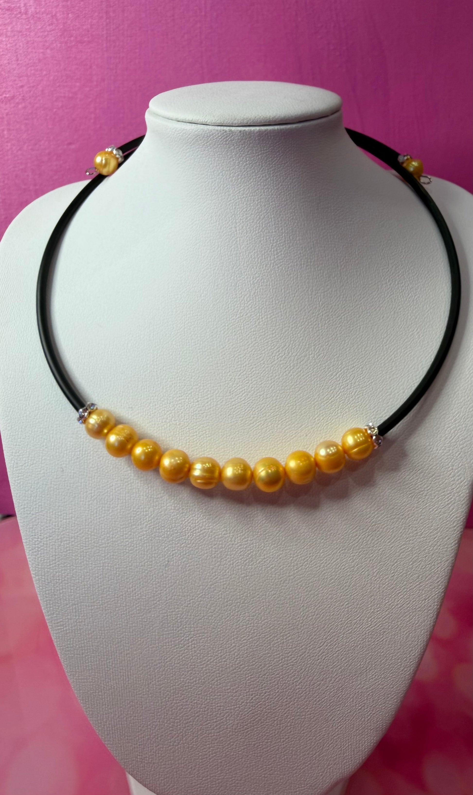 Stunning yellow rice pearl choker.